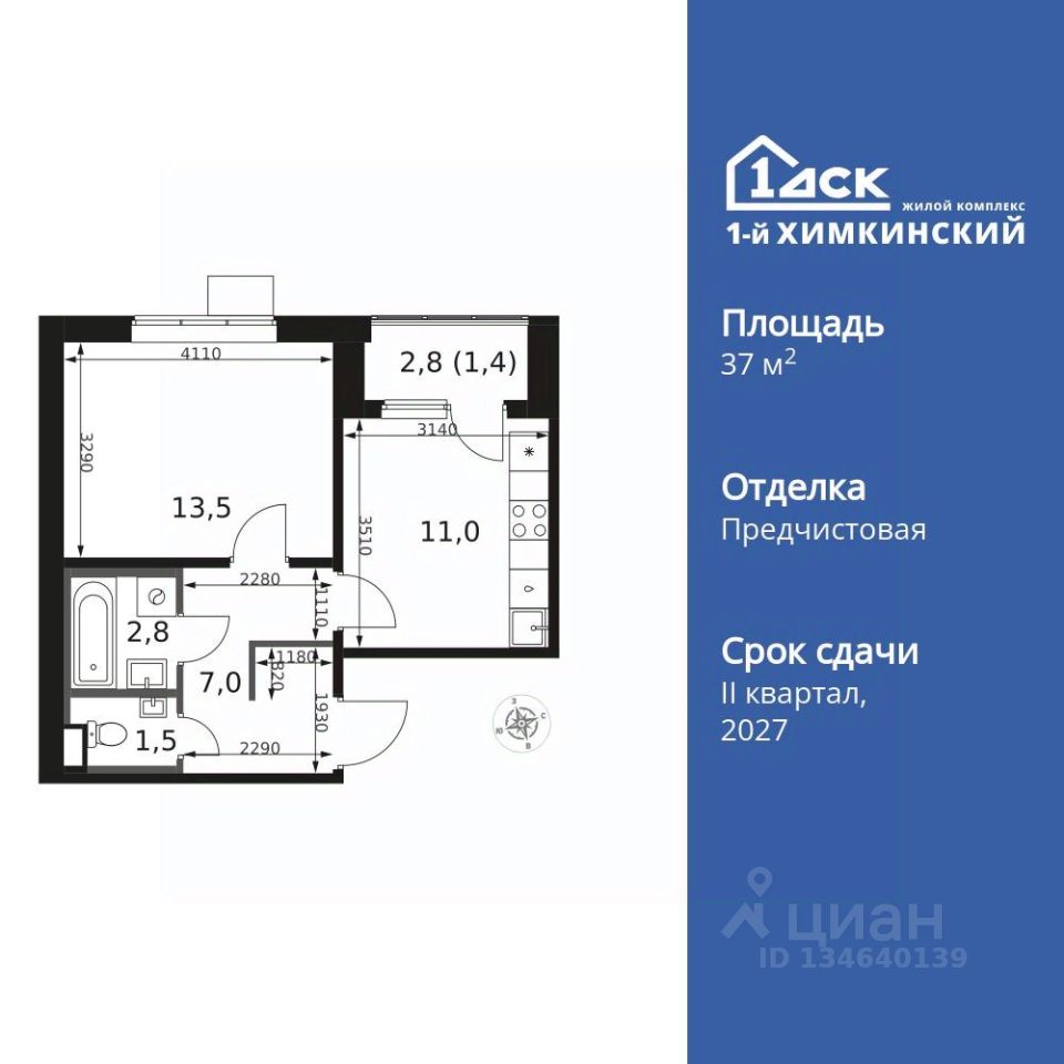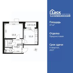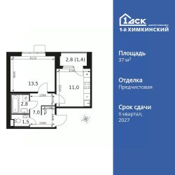 Продаётся 1-к квартира номер 180 общей площадью 37.2 кв.м. на 14-м этаже 17 этажного здания. Отделка Whitebox.