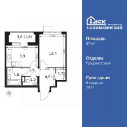 Продаётся 1-к квартира номер 183 общей площадью 37.7 кв.м. на 15-м этаже 17 этажного здания. Отделка Whitebox.