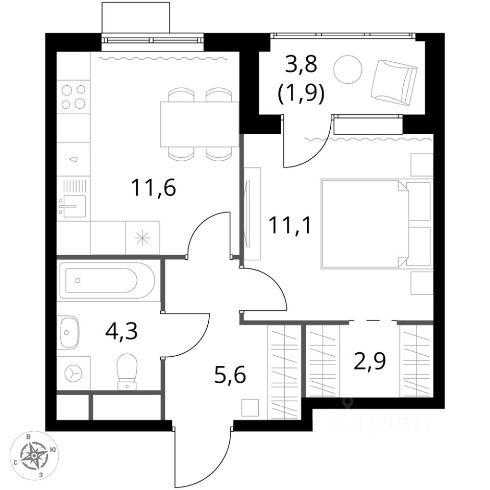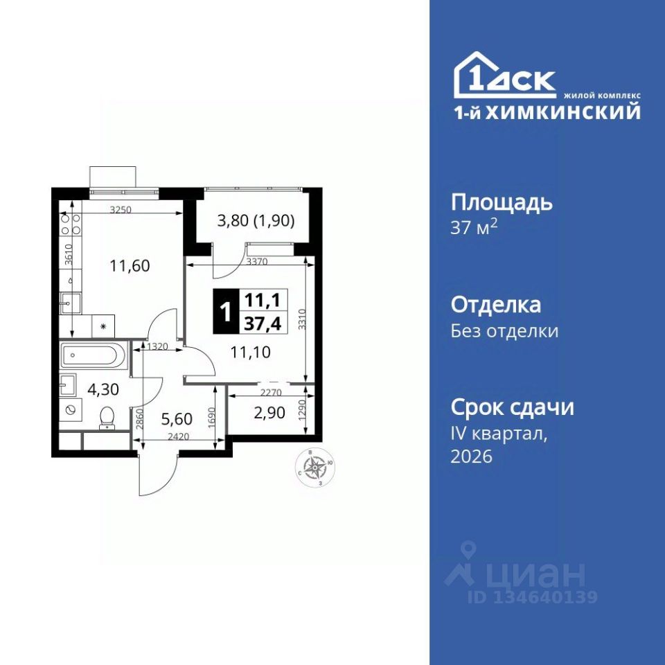 Продаётся 1-к квартира номер 207 общей площадью 37.4 кв.м. на 6-м этаже 16 этажного здания. Без отделки.