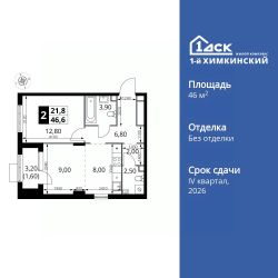 Продаётся 2-к квартира номер 265 общей площадью 46.6 кв.м. на 12-м этаже 16 этажного здания. Без отделки.
