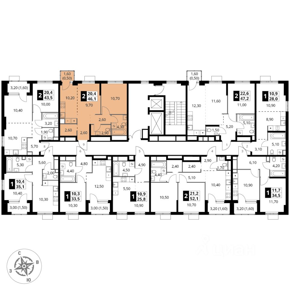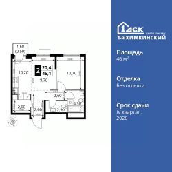 Продаётся 2-к квартира номер 325 общей площадью 46.1 кв.м. на 5-м этаже 12 этажного здания. Без отделки.