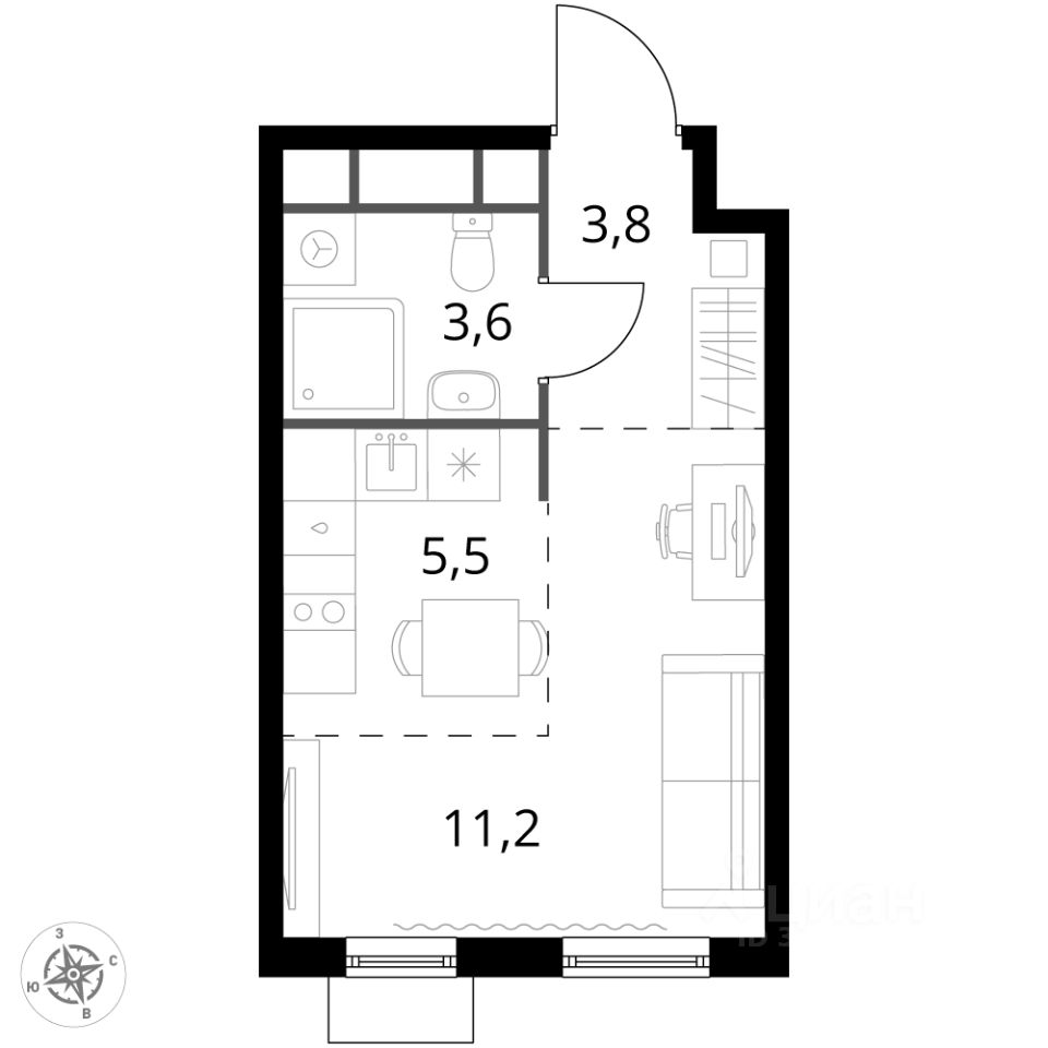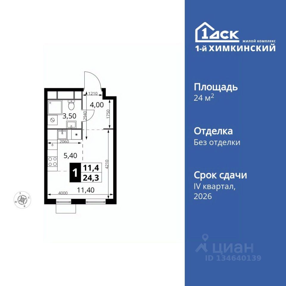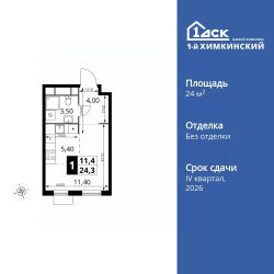Продаётся квартира-студия номер 500 общей площадью 24.1 кв.м. на 8-м этаже 13 этажного здания. Без отделки.