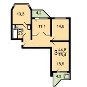 В вашем распоряжении будут три уютные изолированные комнаты 11,1; 14 и 17,8 кв. М., общая жилая площадь 44.8 квадратных метров, без перепланировок, позволяющей комфортно разместиться всей семье.