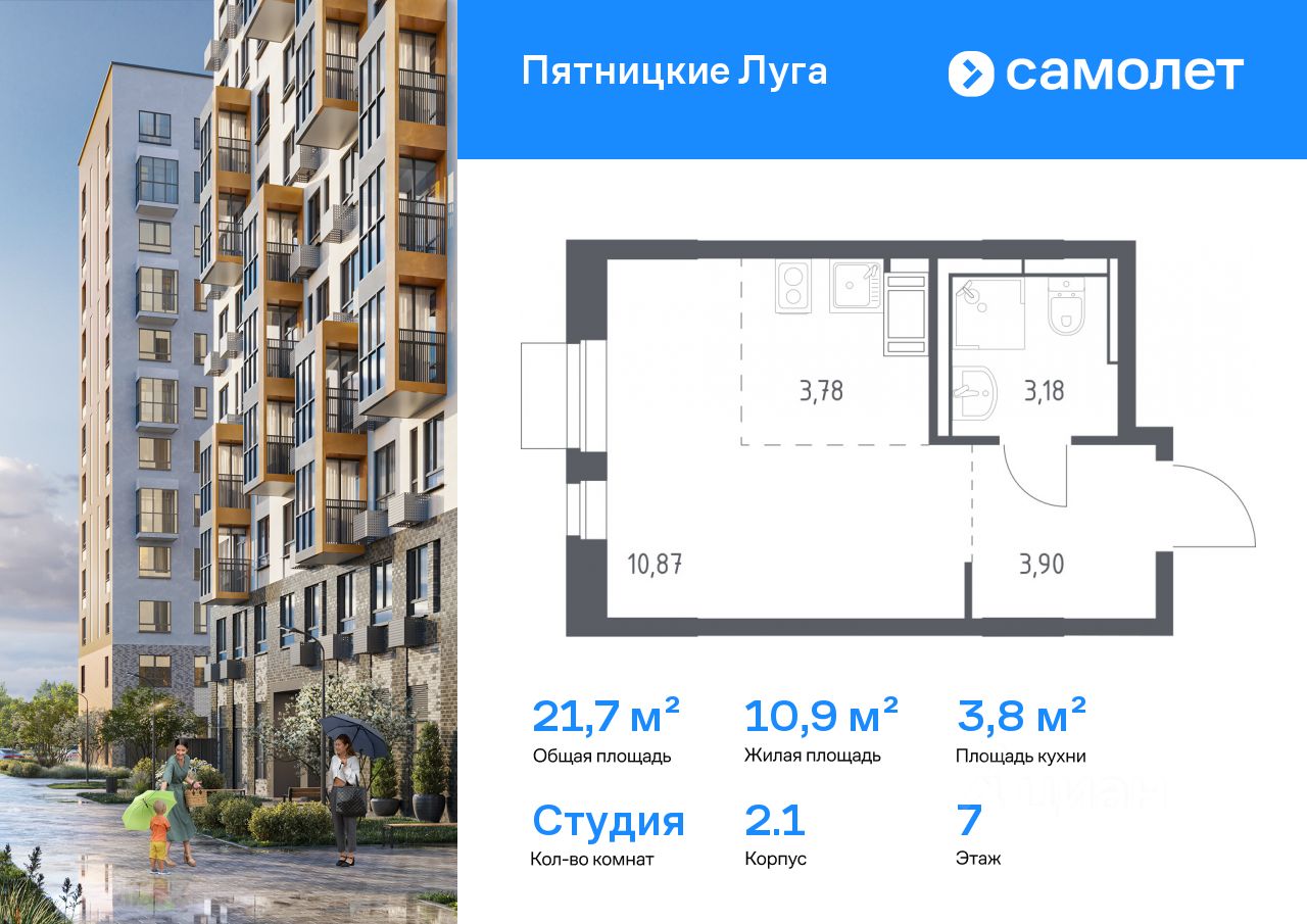 Строим кварталы для жизни с заботой о будущем. Предлагается квартира студия комфорт-класса 21,73 кв.м в корпусе 2.1 на 7 этаже, в ЖК "Пятницкие Луга"
