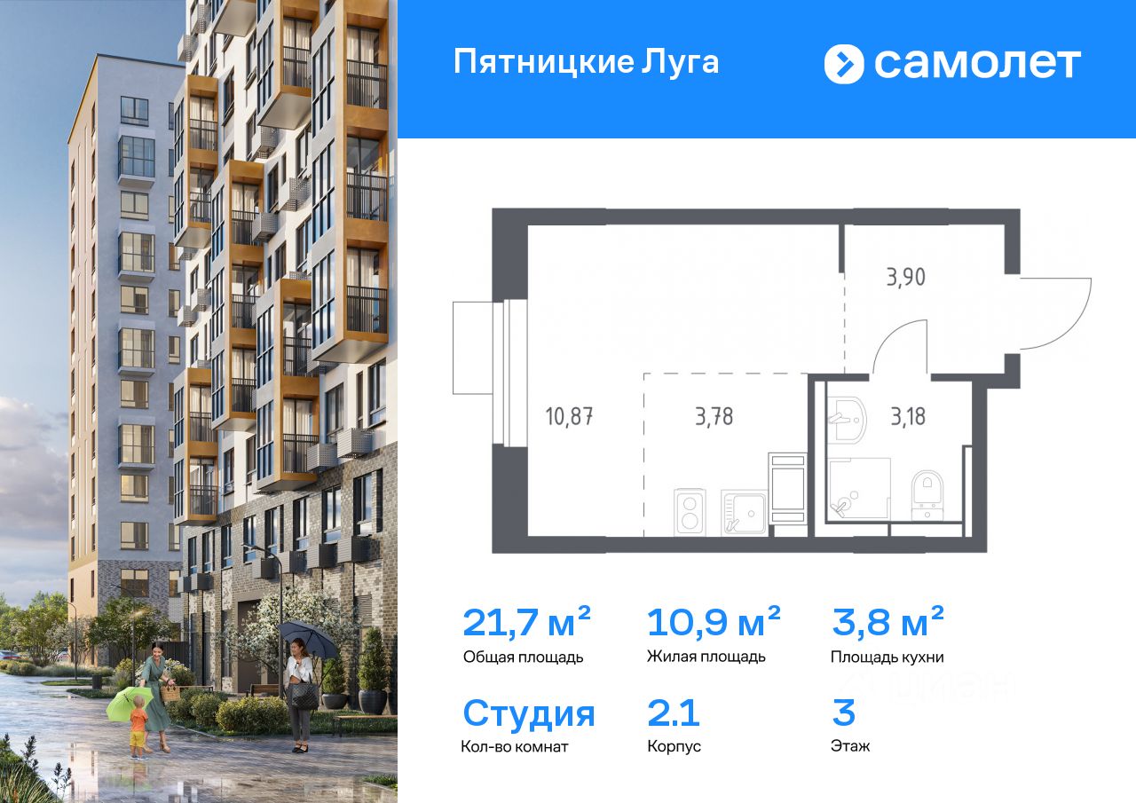 Строим кварталы для жизни с заботой о будущем. Предлагается квартира студия комфорт-класса 21,73 кв.м в корпусе 2.1 на 3 этаже, в ЖК "Пятницкие Луга"
