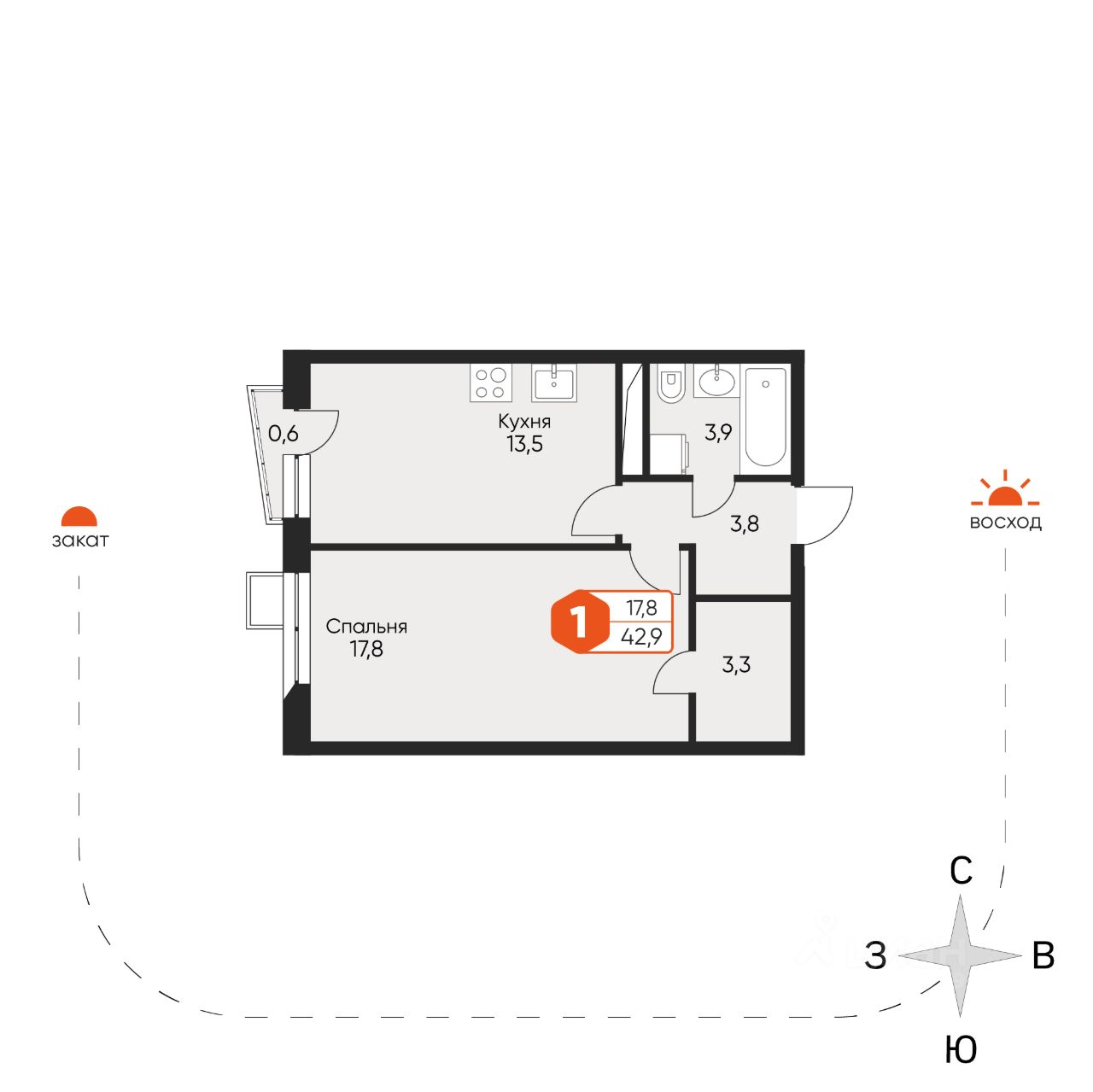 Продаётся 1-комнатная квартира в строящемся доме (Корпус 1), срок сдачи: IV-кв. 2025, общей площадью 42.5 кв.м., на 8 этаже. Проектное финансирование ПАО Сбербанк. Рассрочка до 4 квартала 2024 года. Ипотека по гос. программам от ведущих банков.