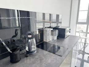 Зону кухни-гостиной разделяет стена с большим панорамным окном и стеклянной дверью,это не как у всех стандартная обычная стена.А частично стена совмещена со стеклянной конструкцией окнами и дверью,которую можно закрыть на ключ. Вход в зону кухни-гостинной и спальни смежный.А чтобы закрыть стеклянную стену с стеклянной дверцей, нужно повесить штору на карниз,и тогда стеклянная зона будет полностью закрыта тюлью и плотными шторами(и все это за стеклянной перегородкой стеной).За счет этого проекта,квартира выглядит стильно и необычно.В зоне кухни-гостинной полы выполнены в итальянском керамограните, панель где кухонный фартук также в керамограните что придает прочность и долговечность кухне,раковина из камня, смеситель дорогой гнущийся с фильтром для воды,машинка стиральная Candy с функцией пара, микроволновая печь,плита хорошая индукционная,электрический чайник все остается,выведены трубы и розетка под посудомойку и духовой шкаф. При желании если покупатель захочет можно докупить кухонные навесные белые ящики для кухни или повесить телевизор над кухонной зоной(розетки предусмотрены, в квартире очень много розеток),обои дорогие,итальянские, моющие(рогожка).Окна застройщика заменены,на дорогие окна Рехау(все створки распашные и откидные все открываются!шторы,техника остаются новому хозяину.Освещение кухни на две зоны трековое и споты.