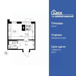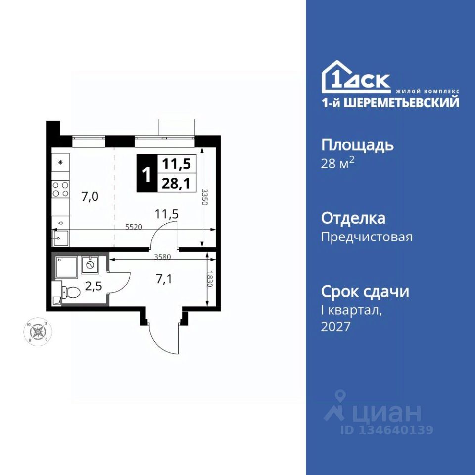 Продаётся квартира-студия номер 349 общей площадью 28.1 кв.м. на 16-м этаже 16 этажного здания. Отделка Whitebox.