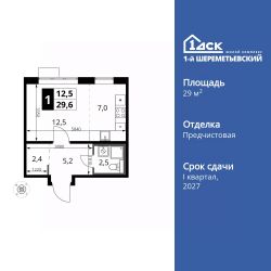 Продаётся квартира-студия номер 350 общей площадью 29.6 кв.м. на 16-м этаже 16 этажного здания. Отделка Whitebox.
