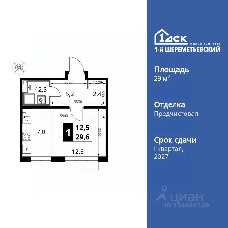 Продаётся квартира-студия номер 357 общей площадью 29.6 кв.м. на 16-м этаже 16 этажного здания. Отделка Whitebox.