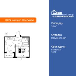 Продаётся 1-к квартира номер 342 общей площадью 33.1 кв.м. на 15-м этаже 16 этажного здания. Отделка Whitebox. Цена с учётом скидки.