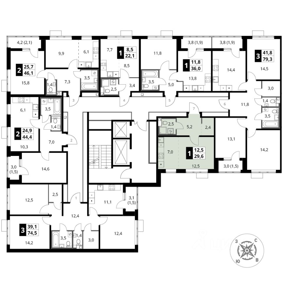 Продаётся квартира-студия номер 458 общей площадью 29.6 кв.м. на 15-м этаже 16 этажного здания. Отделка Whitebox.