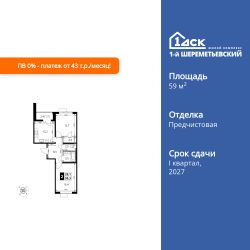Продаётся 2-к квартира номер 482 общей площадью 59.3 кв.м. на 6-м этаже 16 этажного здания. Отделка Whitebox. Цена с учётом скидки.