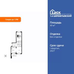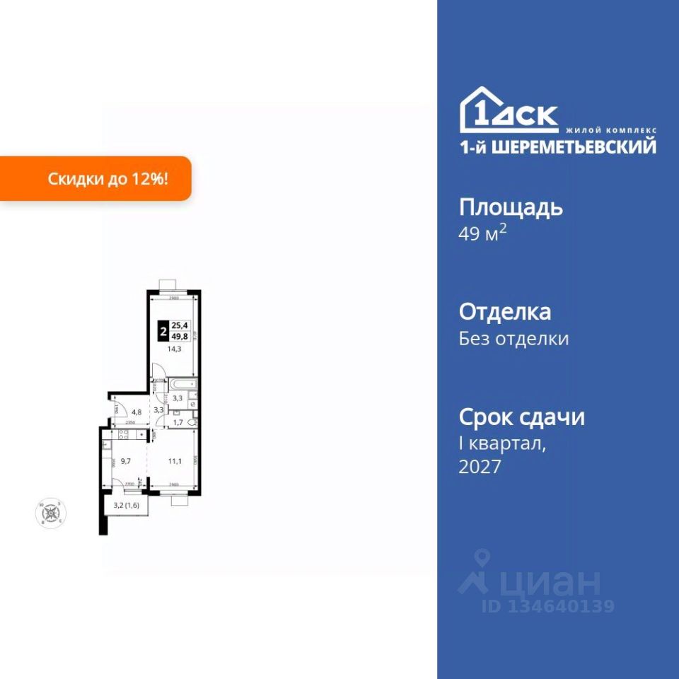 Продаётся 2-к квартира номер 871 общей площадью 49.8 кв.м. на 11-м этаже 17 этажного здания. Без отделки.