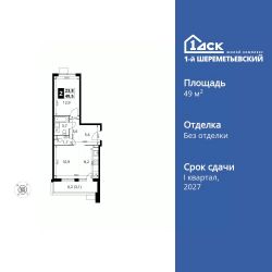 Продаётся 2-к квартира номер 764 общей площадью 49.5 кв.м. на 17-м этаже 17 этажного здания. Без отделки.