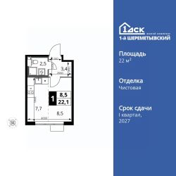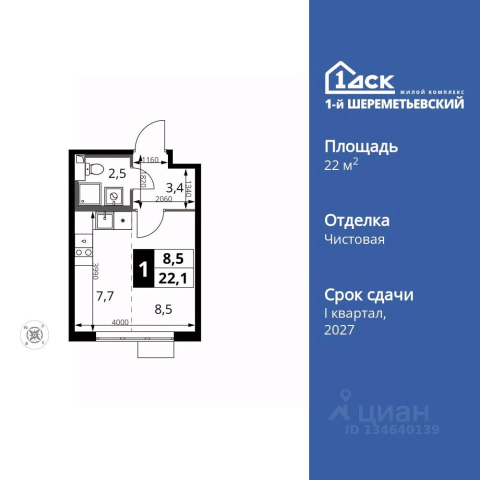 Продаётся квартира-студия номер 995 общей площадью 22.1 кв.м. на 13-м этаже 16 этажного здания. Чистовая отделка.