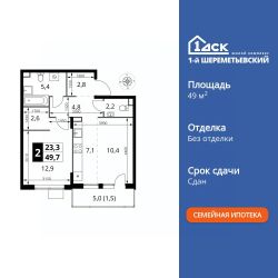 Продаётся 2-к квартира номер 275 общей площадью 49.7 кв.м. на 8-м этаже 17 этажного здания. Без отделки.
