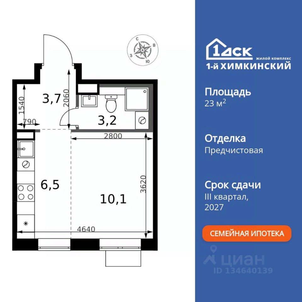 Продаётся квартира-студия номер 108 общей площадью 23.5 кв.м. на 9-м этаже 17 этажного здания. Отделка Whitebox. Цена с учётом скидки.