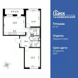 Продаётся 3-к квартира номер 563 общей площадью 67.2 кв.м. на 2-м этаже 16 этажного здания. Отделка Whitebox. Цена с учётом скидки.