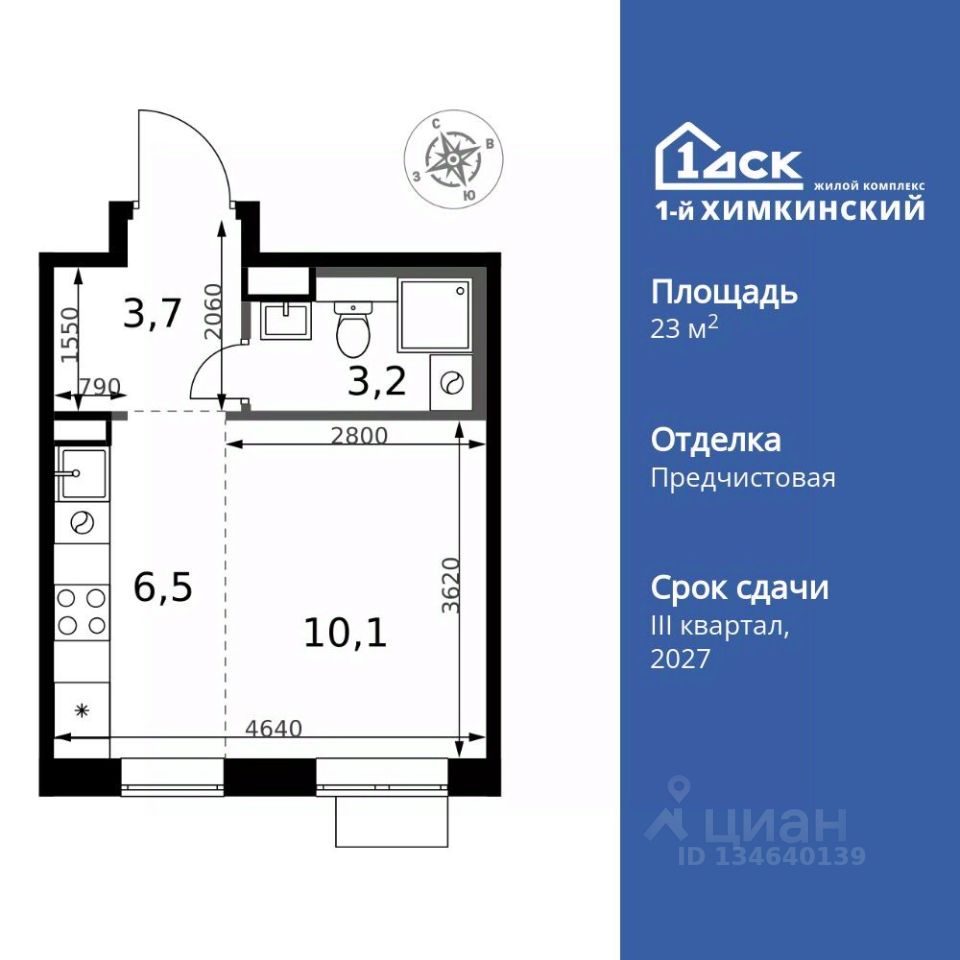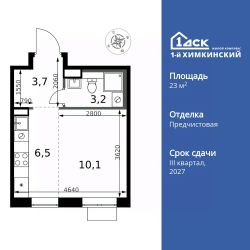 Продаётся квартира-студия номер 121 общей площадью 23.5 кв.м. на 10-м этаже 17 этажного здания. Отделка Whitebox. Цена с учётом скидки.