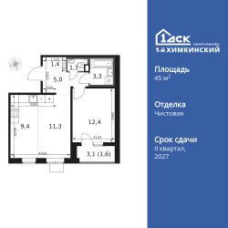 Продаётся 2-к квартира номер 234 общей площадью 45.5 кв.м. на 3-м этаже 14 этажного здания. Чистовая отделка.