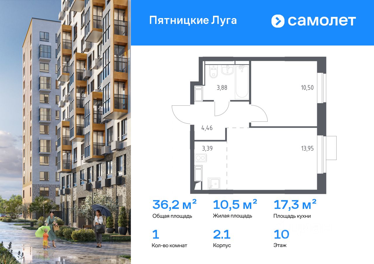 Строим кварталы для жизни с заботой о будущем. Предлагается 1-комнатная квартира комфорт-класса 36,18 кв.м в корпусе 2.1 на 10 этаже, в ЖК "Пятницкие Луга"