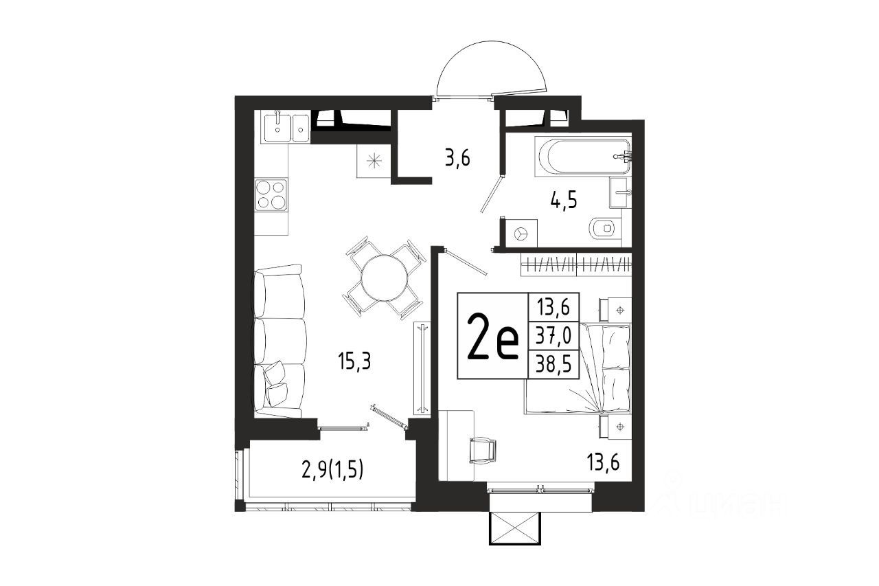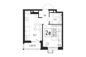 Продаётся 1-комнатная квартира в строящемся доме (Корпус 8 (2 очередь)), общей площадью 38.50 кв.м., на 3 этаже.