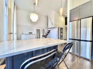 На кухне есть абсолютно все для комфортной счастливой жизни: двухкамерный огромный холодильник с ледогенератором, духовка, индукционная плита, очиститель воды, стиральная машинка с функцией сушки.