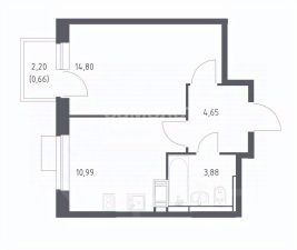 Однушка с балконом на 11 этаже 12-этажного дома, общей площадью 34,98 кв.м