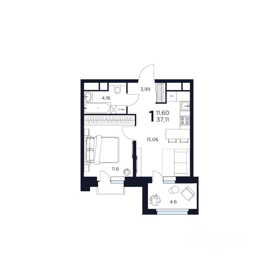 Продаётся 1-комнатная квартира в строящемся доме (Дом 7), срок сдачи: II-кв. 2027, общей площадью 37.11 кв.м., на 11 этаже. Новый жилой комплекс "ВОСТОК II" от застройщика "Новое Время - Химки" расположен по адресу: Московская область, Химки, улица Германа Титова, 2