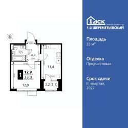Продаётся 1-к квартира номер 684 общей площадью 33.3 кв.м. на 5-м этаже 13 этажного здания. Отделка Whitebox. Цена с учётом скидки.
