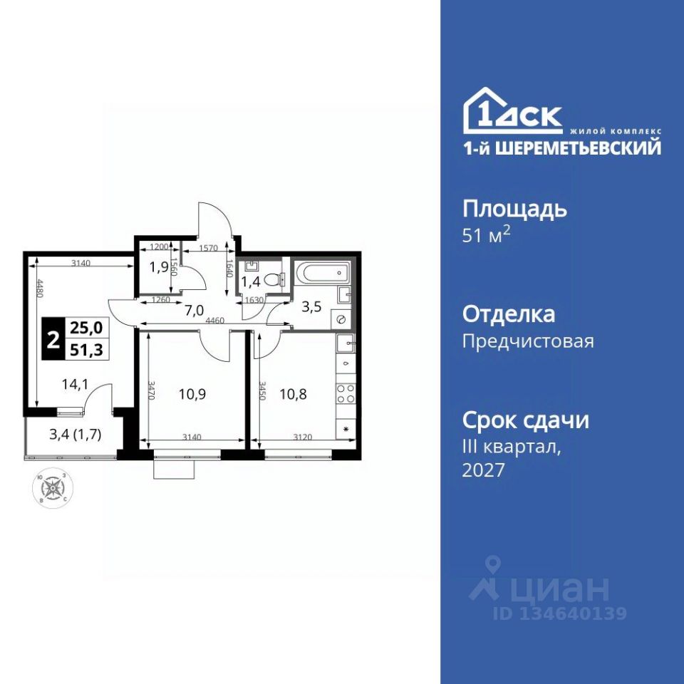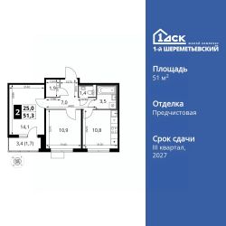 Продаётся 2-к квартира номер 918 общей площадью 51.3 кв.м. на 13-м этаже 16 этажного здания. Отделка Whitebox. Цена с учётом скидки.