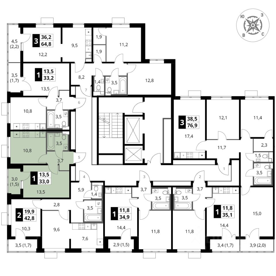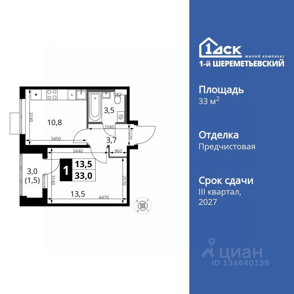 Продаётся 1-к квартира номер 1039 общей площадью 33 кв.м. на 13-м этаже 16 этажного здания. Отделка Whitebox. Цена с учётом скидки.