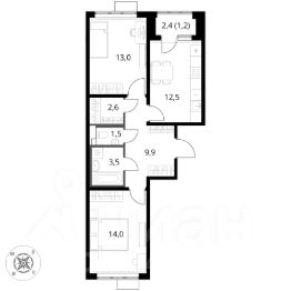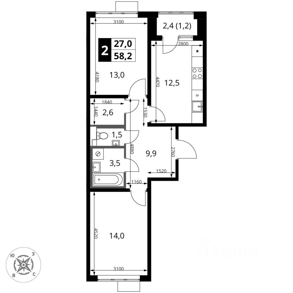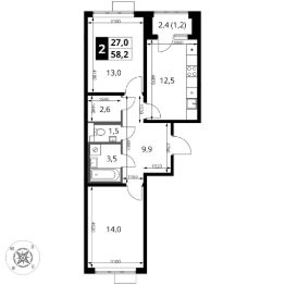Продаётся 2-к квартира номер 153 общей площадью 58.2 кв.м. на 2-м этаже 16 этажного здания. Отделка Whitebox. Цена с учётом скидки.