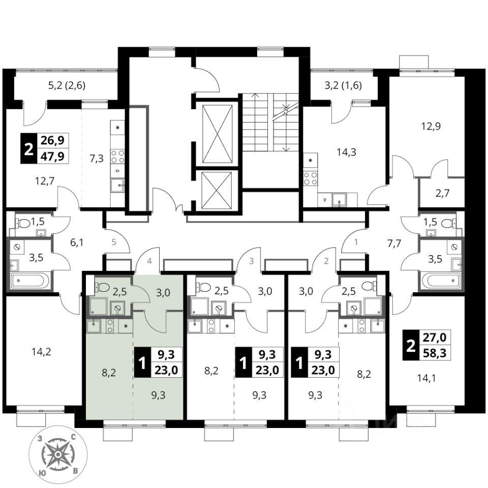 В ЖК 1-й Шереметьевский разнообразие площадей и планировок. Большие кухни-гостиные: в них два окна или больше. Во всех квартирах площадью от 40 кв.м. и выше спроектировано 2 санузла. Большие остекленные лоджии с отделкой.