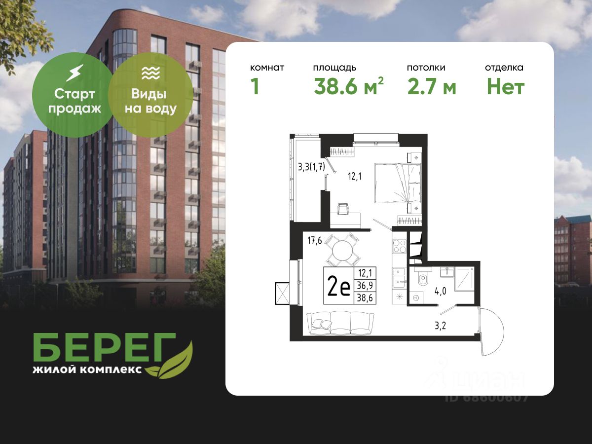 Продаётся 1-комнатная квартира в строящемся доме (Корпус 4 (2 очередь)), общей площадью 38.60 кв.м., на 5 этаже. ЖК "Берег" расположен в живописном месте на берегу канала им. Москвы с хорошей экологией, вдали от шума в окружении леса и парков. Это микрорайон Клязьма-Старбеево, в квартале Международный, городского округа Химки. Проект класса "Комфорт +" предлагает отличные условия для жизни в окружении природы и современной инфраструктуры. На территории будут велопарковки, воркаут, спорт площадка, детская площадка с игровыми комплексами для детей младшего и старшего возраста, площадка отдыха, озеленение с разнообразными деревьями и кустарниками. Каждый день дарит новые впечатления и новые возможности не только для спокойной жизни, но развития и отдыха.