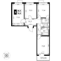 Продаётся 3-к квартира номер 1056 общей площадью 76.9 кв.м. на 16-м этаже 16 этажного здания. Отделка Whitebox. Цена с учётом скидки.