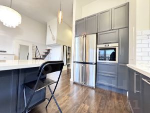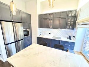 На кухне есть абсолютно все для комфортной счастливой жизни: двухкамерный огромный холодильник с ледогенератором, духовка, индукционная плита, очиститель воды, стиральная машинка с функцией сушки.
