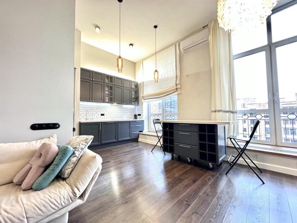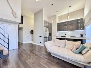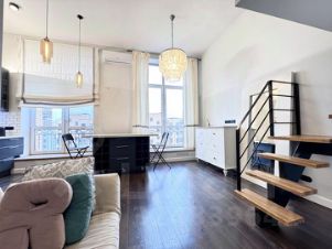 - Два уровня - спальня или релакс зона наверху, а внизу - светлая гостиная с панорамными окнами и видом на благоустроенную территорию.