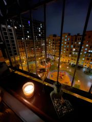 Потолки в квартире 3,75 метра, за счет этого в доме всегда много воздуха, французские окна от пола до потолка также дают ощущение простора. На окошки можно повесить кашпо и выращивать цветы или зелень для приготовления. А также превращать это место в мини-веранду: почти до 14:00 здесь светит солнце, так что можно загорать на больших подоконниках, а вечером посидеть на подушках и почитать книгу :)