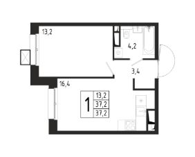 Продаётся 1-комнатная квартира в строящемся доме (Корпус 8 (2 очередь)), общей площадью 37.20 кв.м., на 1 этаже.