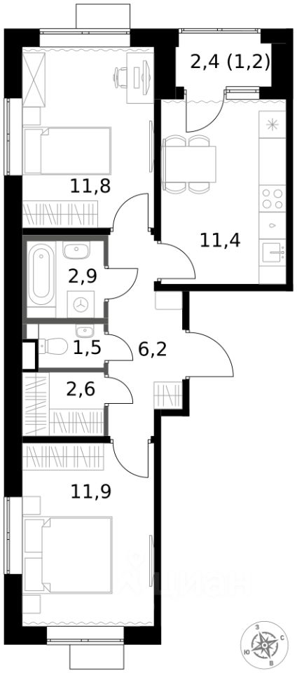 - Раздельный санузел - больше удобства для всех членов семьи.