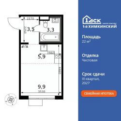 Продаётся квартира-студия номер 389 общей площадью 22.6 кв.м. на 6-м этаже 17 этажного здания. Чистовая отделка. Цена с учётом скидки.
