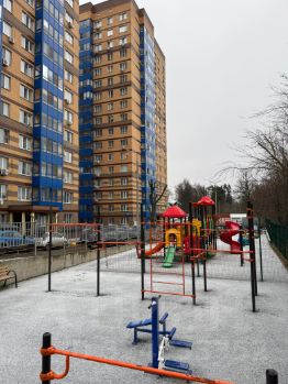 Квартира находится на 14-м этаже 17-этажного кирпичного здания. Высота потолков — 2,8 метра, что создает ощущение простора и свободы.