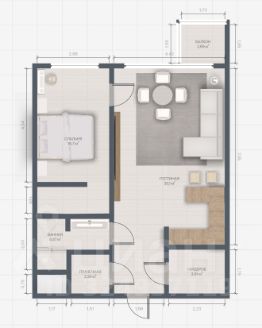 В продаже просторная однокомнатная квартира площадью 64.4 кв.метра.