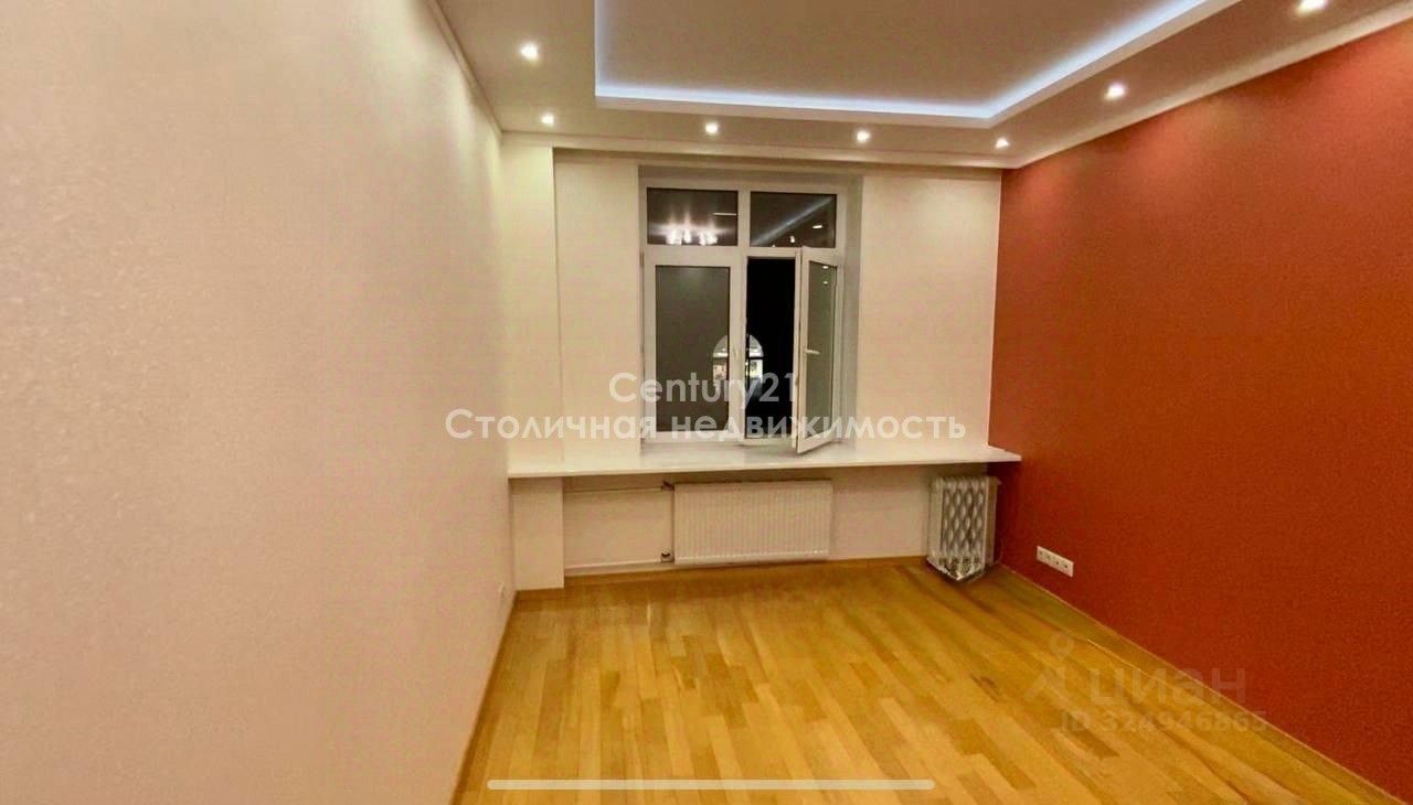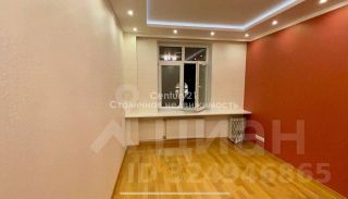 с отделкой в светлых теплых тонах и дизайнерской 2-х уровневой подсветкой потолка в одной из комнат (планировалась как зал)