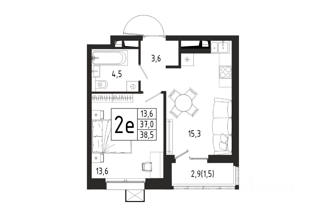 Продаётся 1-комнатная квартира в строящемся доме (Корпус 4 (2 очередь)), общей площадью 38.50 кв.м., на 2 этаже.
