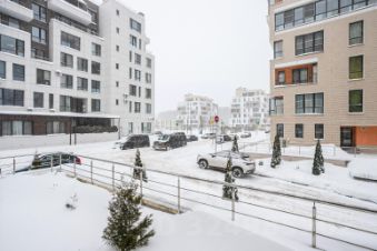 Хороший вид из окон - есть придомовая территория с туями и можжевельниками, под окнами никто не ходит, высокий первый этаж. В доме подземный паркинг. Дом крайний к лесу, чистый воздух, тихий спокойный район, уютно. Рядом Вкуссвил, магазины, Кофейня, детский сад в 7 минутах ходьбы.