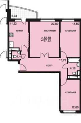 Общая площадь составляет 84.7 квадратных метра, плюс лоджия. Квартира находится на 3 этаже 17-этажного дома.
