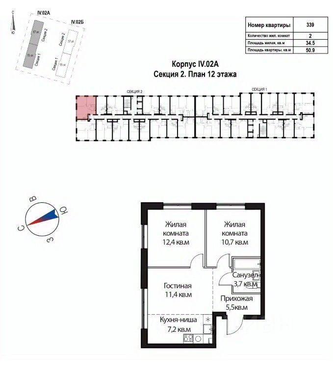 Общая площадь50,9 м²
